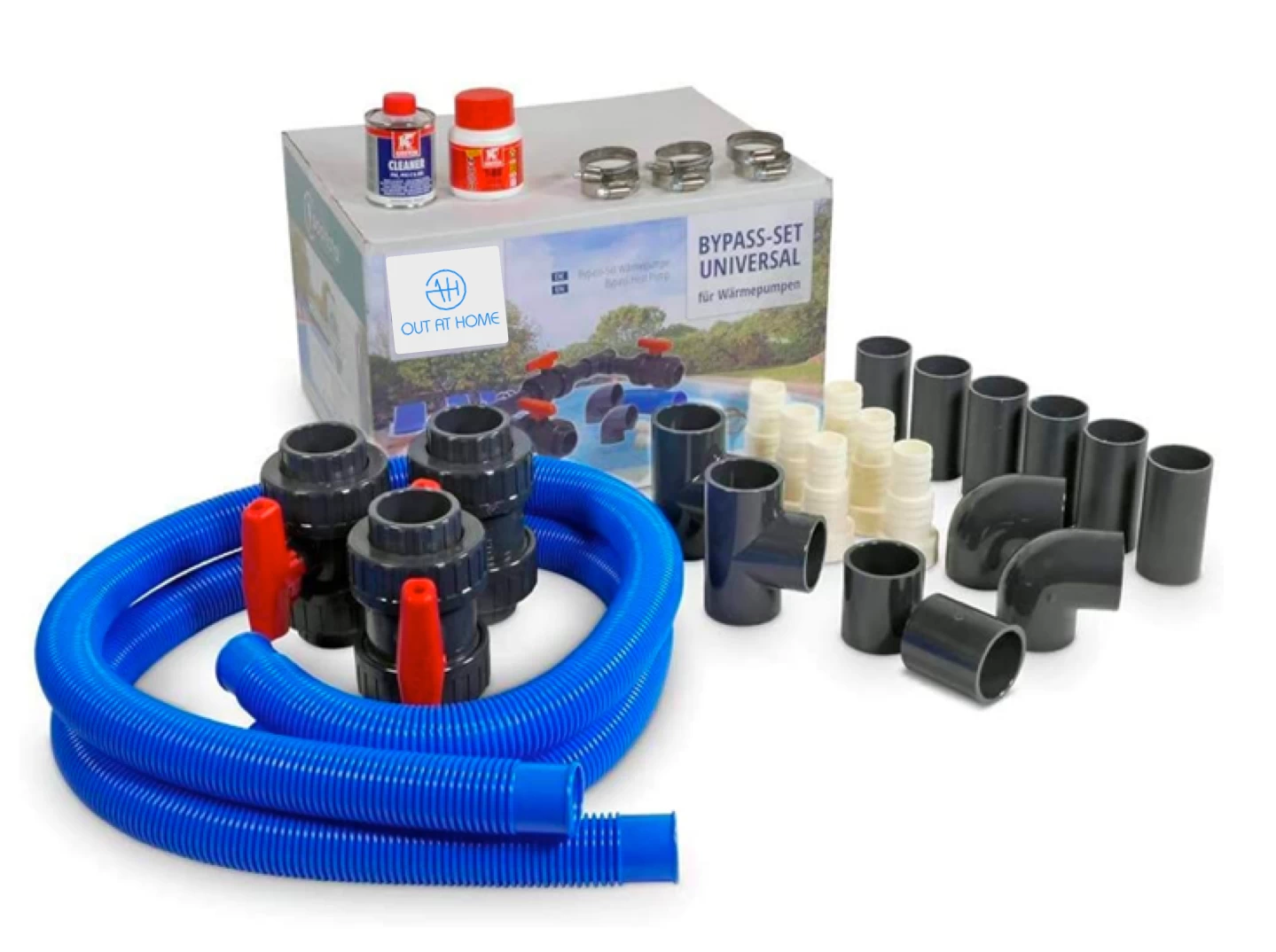 In tegenstelling tot andere bypass-kits wordt deze bypass set geleverd met zwembadslangen (38mm) en slangklemmen, om de warmtepomp meteen goed aan te kunnen sluiten.