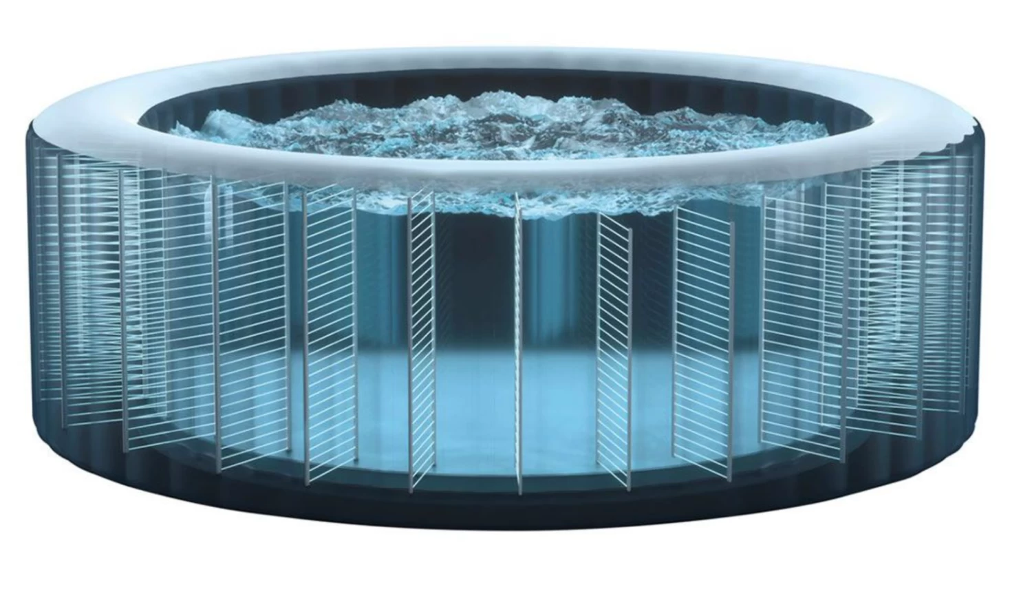 Deze hot tub is uitgerust met 140 verwarmde bubbeljets en maakt gebruik van de unieke gepatenteerde Fiber-Tech technologie, waardoor het een van de meest hoogwaardige opblaasbare bubbelbaden op de markt is.