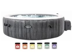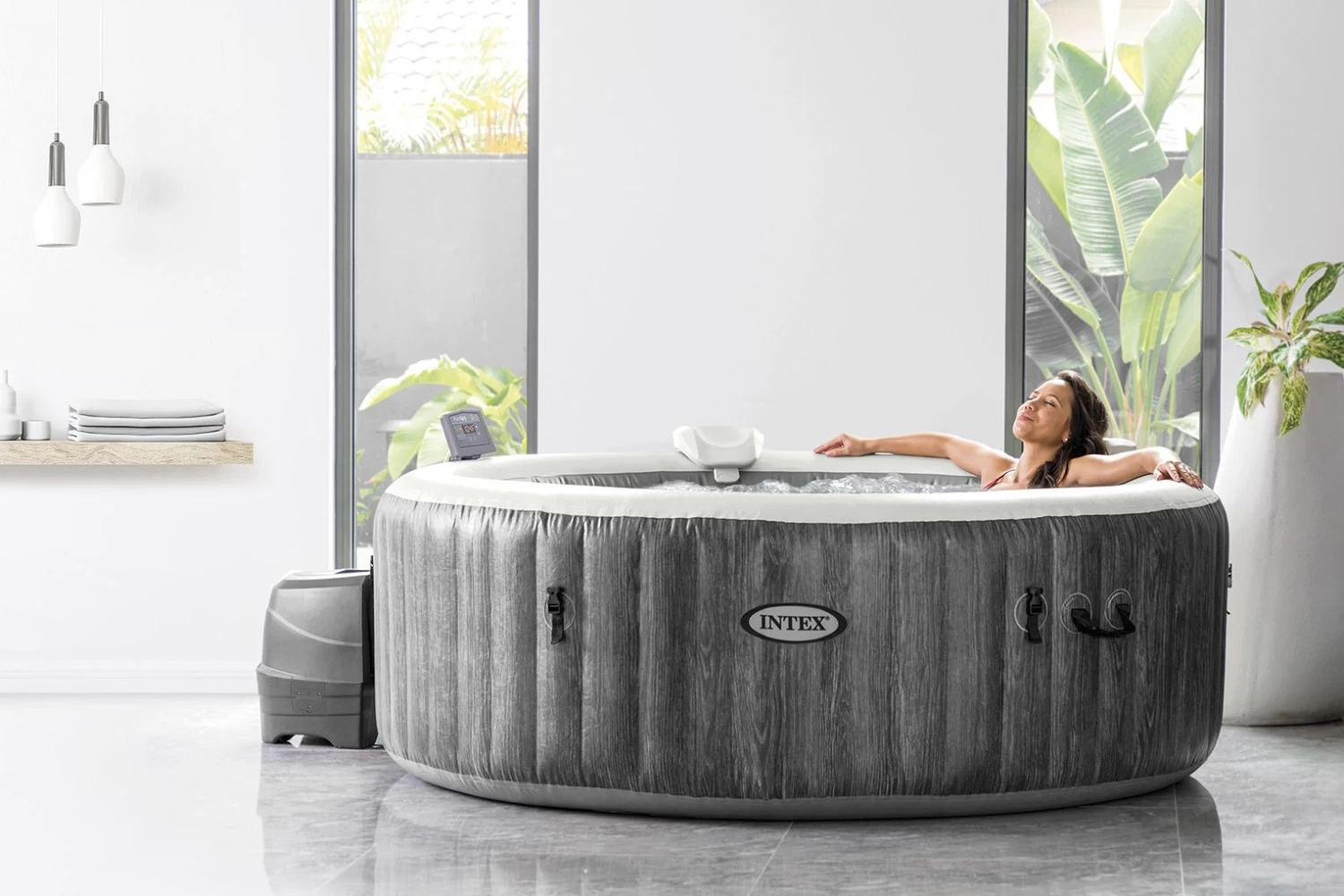 Intex brengt een nieuw niveau van verwennerij met de gloednieuwe Intex PureSpa Bubble Deluxe Greywood 6-persoons hottub. Het verfijnde houtnerfpatroon voegt een vleugje elegantie toe aan elke achtertuin.