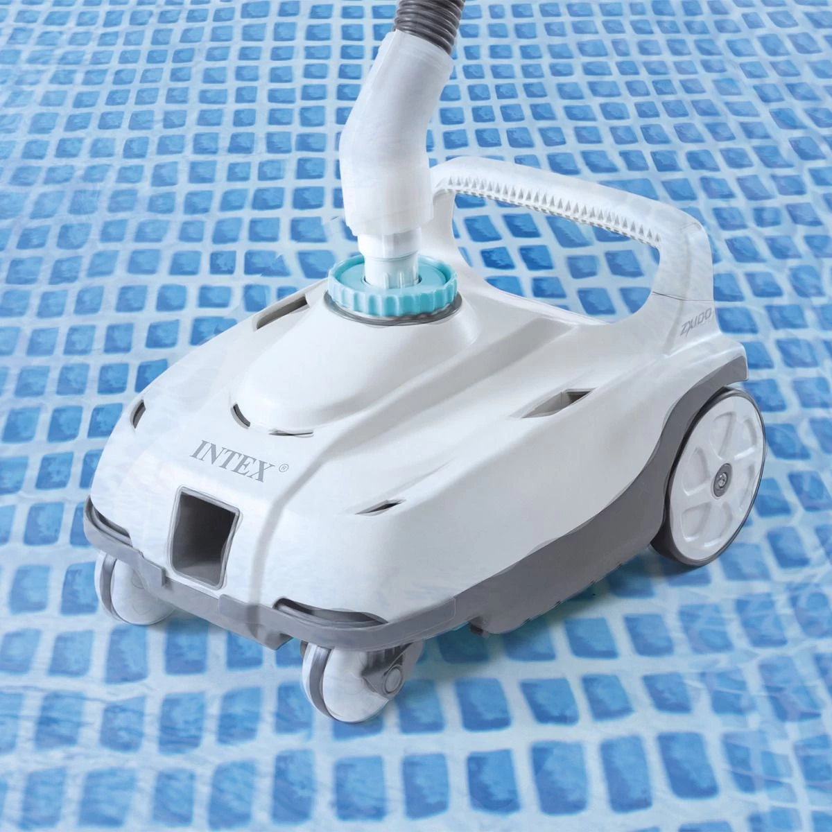 De Intex ZX100 is een zwembadrobot voor automatische reiniging van de zwembadbodem. De ZX100 verwijdert bladeren, gras, zand, insecten, algen en ander vuil.