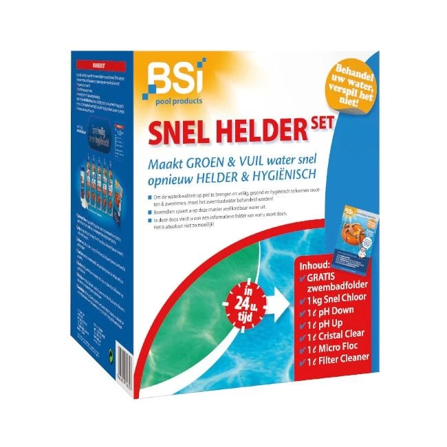 - 1kg Snel Chloor: snel oplossend chloorgranulaat, voorkomt onzuiverheden in het zwembadwater. Algen- en bacteriedodend middel.