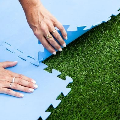 Deze ondervloer bestaat uit 8 losse ondertegels met een lengte en breedte van 50 cm en een dikte van 0,4 cm die het ontwerp van puzzelstukken hebben. Hierdoor kun je de ondervloer oneindig uitbreiden met meerdere verpakkingen.