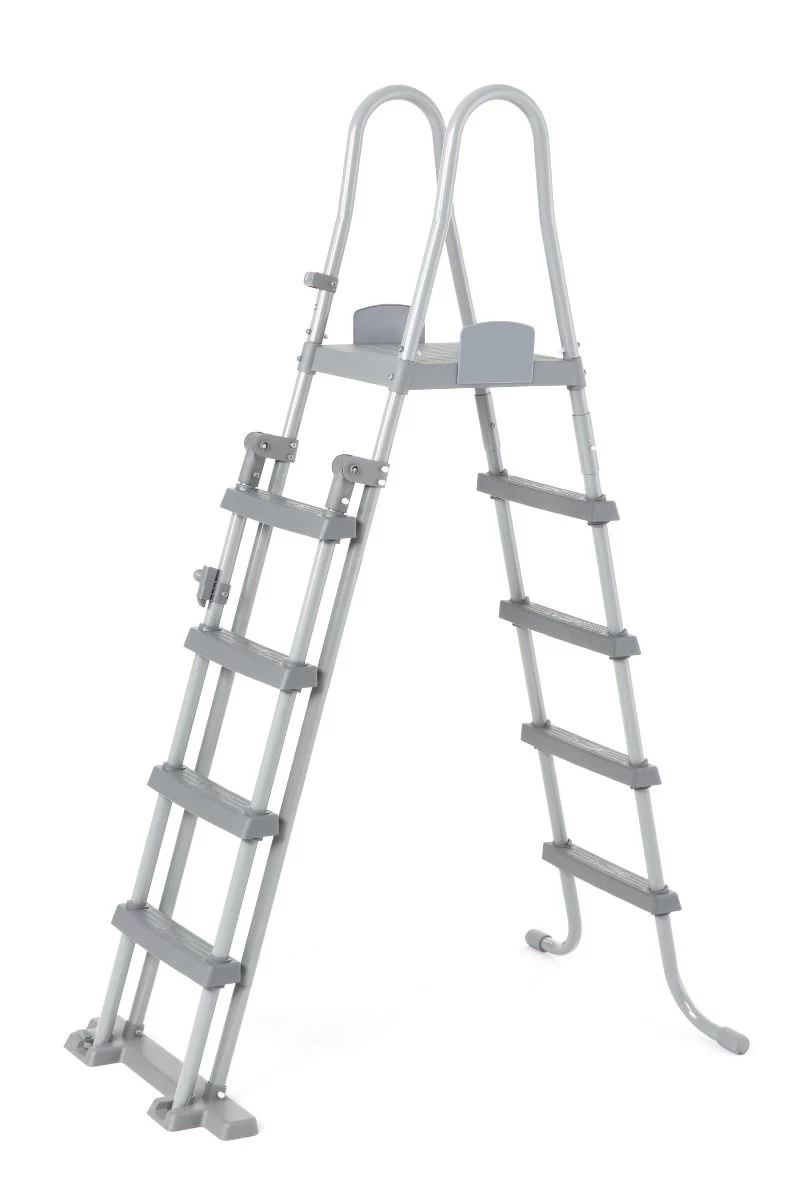 De ladder met 4 treden heeft een stevig roestbestendig metalen frame. De robuuste kunststof anti-slip treden zijn stevig aan het frame bevestigd, waardoor iedereen veilig in en uit het zwembad kan gaan. Daarnaast heeft het trapje een beschermend plateau en 2 stevige handvatten. De treden aan de buitenkant van de ladder kunnen ingeklapt worden om te voorkomen dat de ladder door kinderen wordt gebruikt, zodat ongelukken gemakkelijk kunnen worden vermeden.