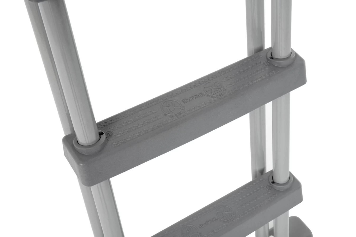 De ladder is geschikt voor bovengrondse zwembaden met een maximale hoogte van 132 cm, is eenvoudig te monteren en is geschikt voor water met een neutraal pH (niet geschikt voor zout water).